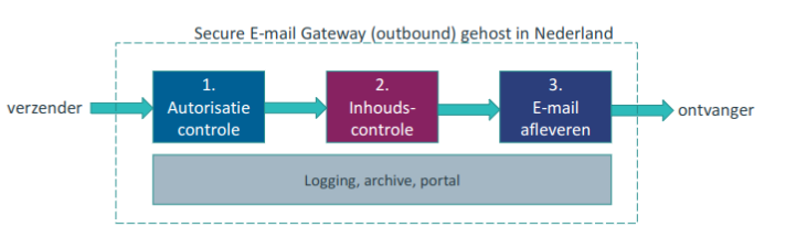 Na autorisatie wordt er door de Secure E-mail Gateway gecontroleerd op inhoud van het e-mailbericht, in onderstaande stappen.